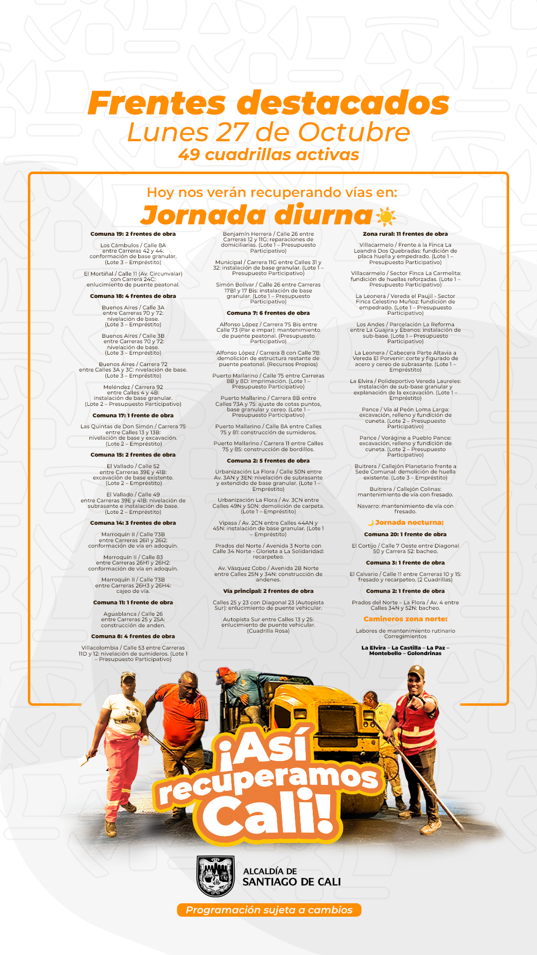 Día a día avanzamos para recuperar juntos nuestra malla vial – semana del 27 al 31 de octubre