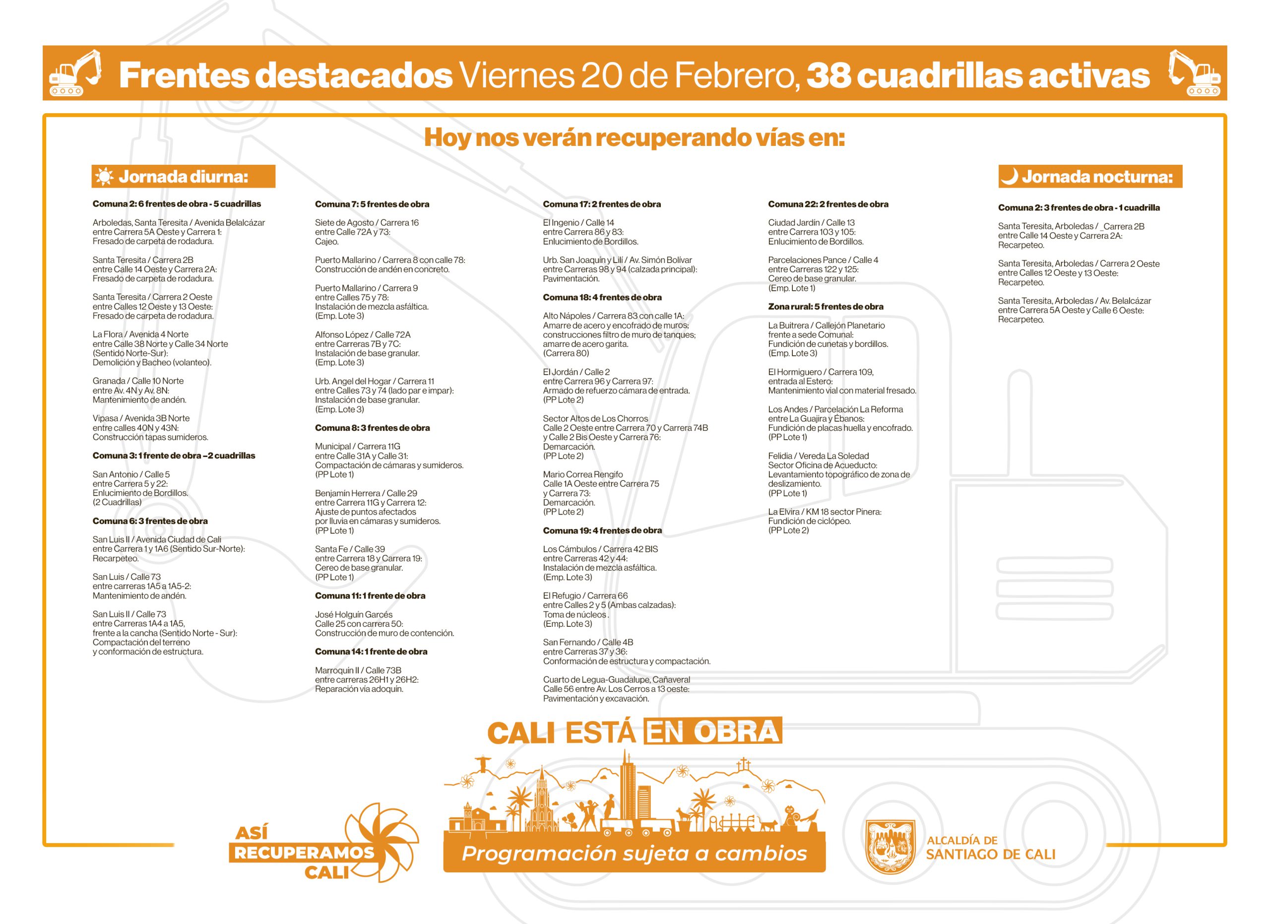 Día a día avanzamos para recuperar juntos nuestra malla vial – semana del 16 al 20 de febrero – 2026
